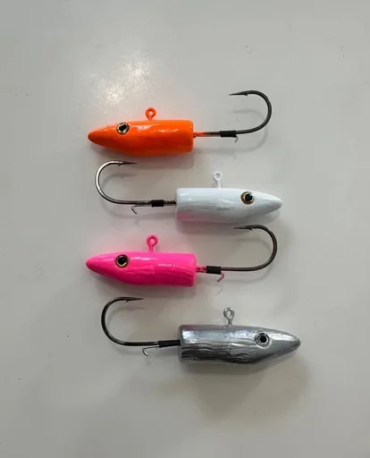 These are kira eel jigheads for the kira eel shad. They come with a retaining wire so no superglue required. Very streamlined to get down quickly to target fish. In various colours.